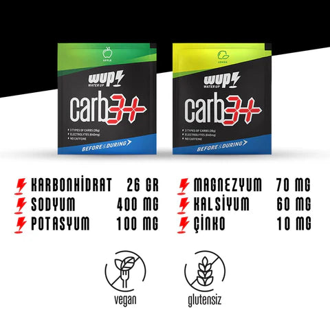 WUP Carb3+ Elmalı, sadece 500 ml su ile kolayca karıştırılıp tüketilebilir. Bu, antrenman öncesi, sırası ve sonrasında ideal bir enerji ve elektrolit desteği sağlayarak, performansınızı sürdürmenize ve daha hızlı toparlanmanıza yardımcı olur.