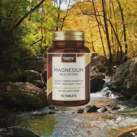 BIGJOY VITAMINS® Multiform Magnesium, magnezyum sitrat, magnezyum bisglisinat ve magnezyum malat içeren üçlü bir magnezyum kompleksidir. Bu formlar, biyoyararlanım ve doku dağılımı üzerine yapılan araştırmalarda farklı fizyolojik süreçlere katkı sağlayabilen magnezyum türleri olarak tanımlanmıştır. Üründe her tablet, toplam 200 mg elementel magnezyum sağlar ve bu mineral normal kas fonksiyonu, sinir sistemi aktivitesi ve elektrolit dengesinin korunmasında görev alan temel bir besin ögesidir.