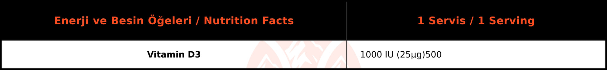Bigjoy Vitamins Vitamin D3, her tablette 1000 IU (25 µg) D3 vitamini sağlayan, günlük kullanıma uygun bir vitamin takviyesidir. D3 vitamini; bağışıklık sistemi, kemik yapısı ve kas fonksiyonlarının normal işleyişinde rol oynayan temel bir mikro besindir ve özellikle fiziksel olarak aktif bireyler için önem taşır.