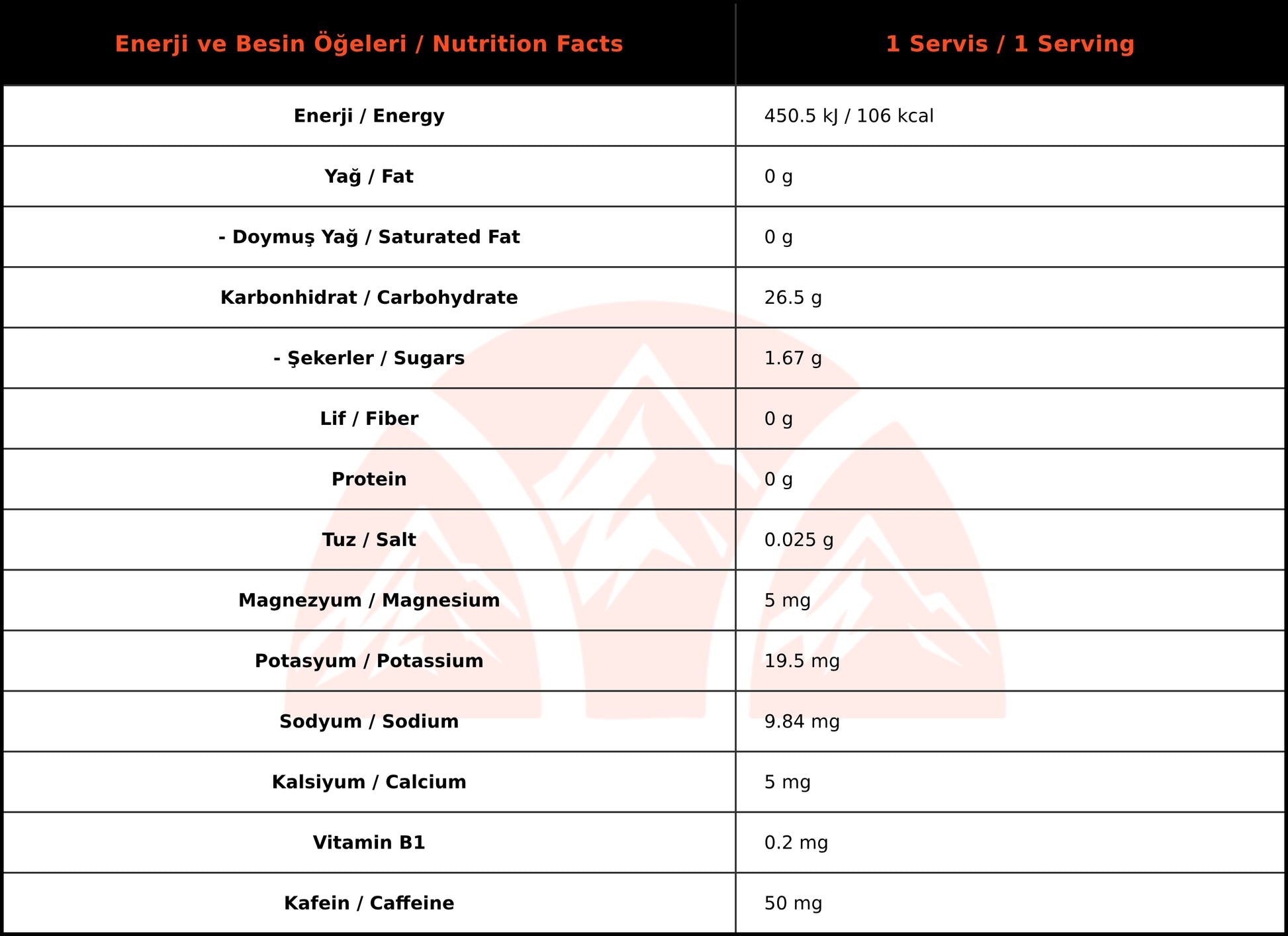 - Her 50 g jel 106 kcal enerji ve 26.5 g hızlı emilen karbonhidrat içerir.