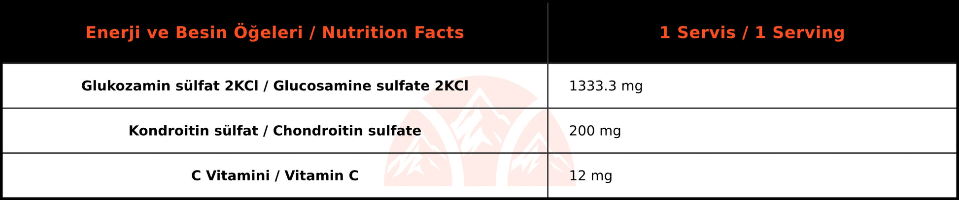 Kondroitin Sülfat: Servis başına 200 mg kondroitin sülfat, glukozaminle sinerjik bir etki yaratarak eklem ve kıkırdak sağlığını destekler.