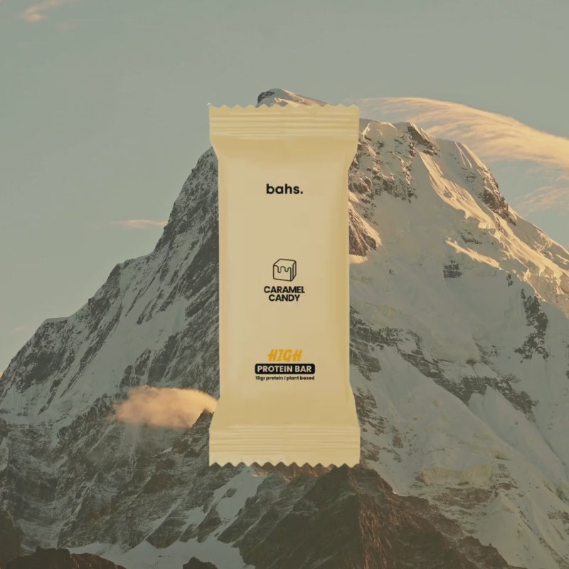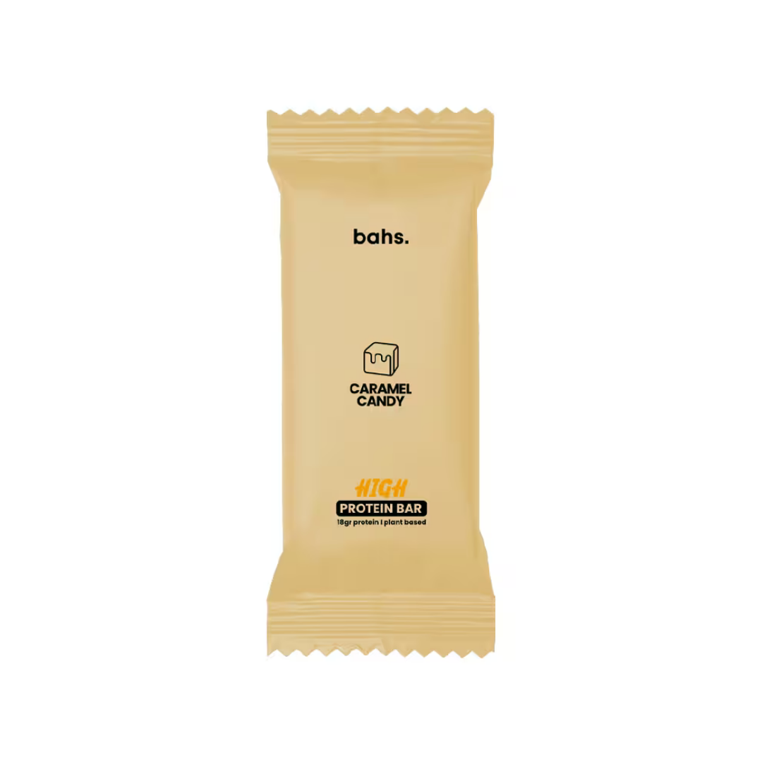 bahs. High Protein Bar Caramel Candy, 18 gram bitkisel protein içeriğiyle gün içinde, antrenman öncesi veya sonrası protein desteği sağlamak amacıyla formüle edilmiştir. Her bar 280 kalori enerji içerir; bu sayede hem kas onarımına hem de glikojen depolarının yeniden dolmasına katkı sağlar. %25 bezelye proteini, hurma ve yer fıstığı ile oluşturulan matris, amino asit profili açısından dengelidir. Karbonhidrat içeriği doğal kaynaklıdır; tüm şekerler hurmadan gelir ve ürün ilave şeker ya da rafine şeker içermez. Gliserol ilavesi sayesinde barın nem oranı korunur, bu da antrenman sonrası kolay tüketim sağlar. Renklendirici veya yapay katkı maddesi içermez.