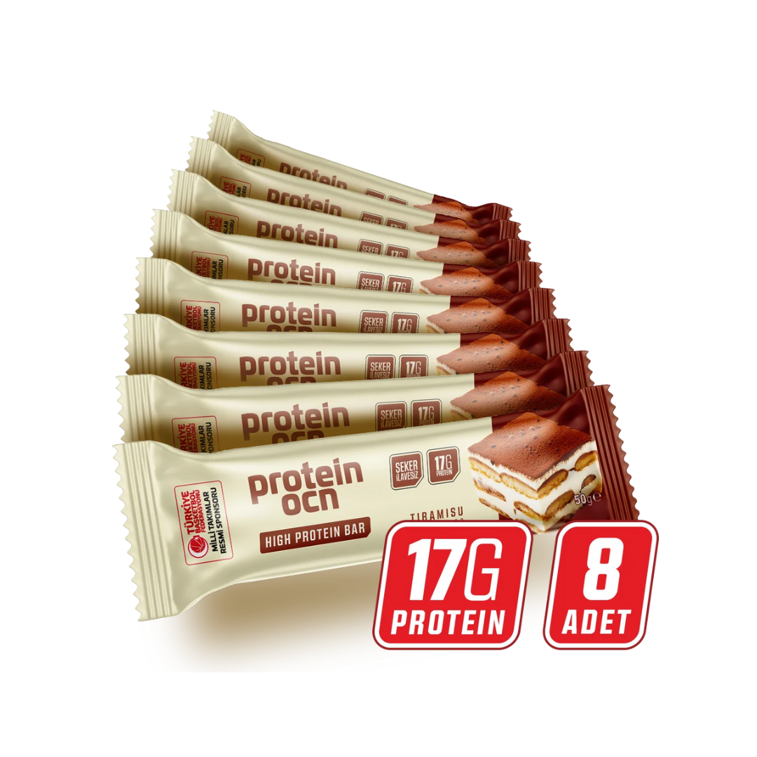 Protein Ocean Yüksek Protein Bar Tiramisu Aromalı, günlük protein ihtiyacını desteklemek için geliştirilmiş bir sporcu atıştırmalığıdır. Her bar 50 gram olup 17,1 gram protein ve 187 kalori içerir. Protein kaynağı olarak süt proteini konsantresi ve whey kullanılır; bu sayede kas onarımı ve toparlanma sürecine destek verir. Düşük şekerli formülüyle dikkat çeker, ilave şeker içermez; barın toplam şeker miktarı yalnızca 1,7 gramdır. Hurma veya rafine şeker içermez, gluten bulunmaz. Tiramisu aromasıyla geliştirilmiş olan bu bar, kahve ve kakao notasına sahip yumuşak bir tat profili sunar.